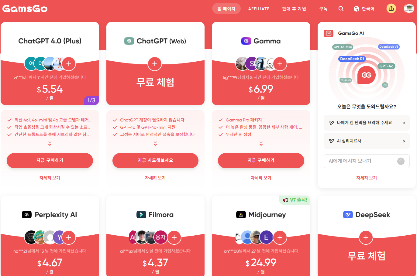 이는 1개의 계정을 최대 4명까지 분할 사용하기 때문에 가능한 구조입니다. chat gpt와 퍼플렉시티의 경우엔 1개 개정을 최대 6명에서 사용합니다.