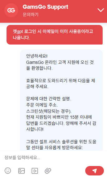 갬스고 홈페이지 우측 하단의 메신저 박스 체크하면 채팅창이 생깁니다. 채팅창에 로그인 안 된다고 말하면 금방 답변이 옵니다.