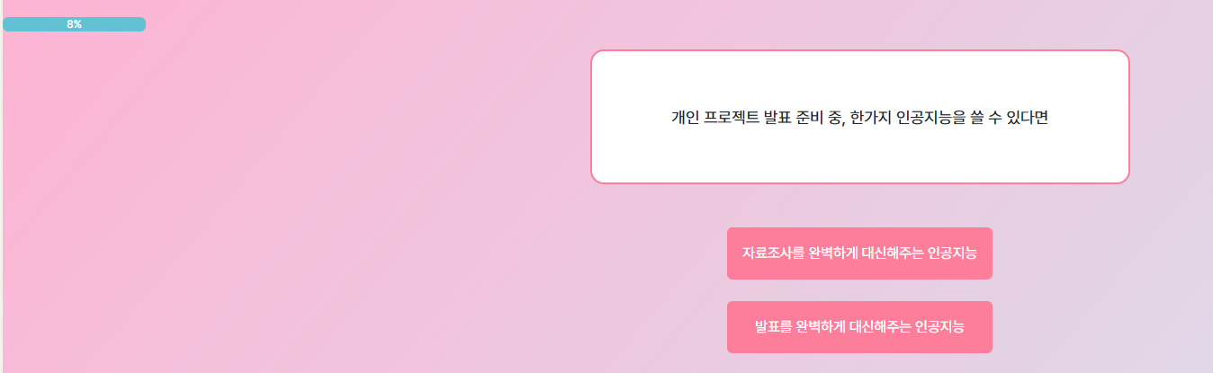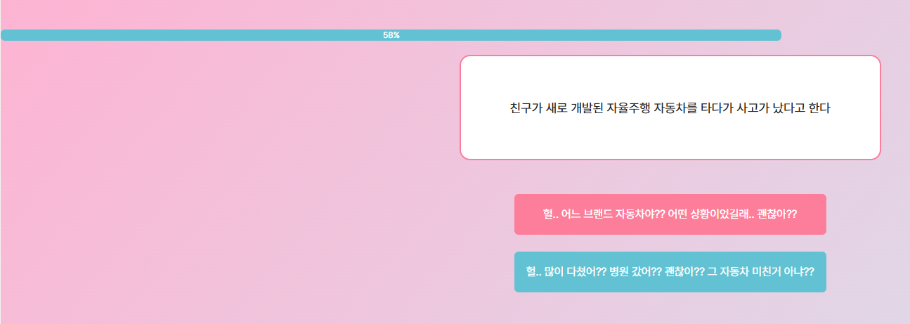 - 질문 답변: 총 12문항의 2지 선다형 질문에 답변