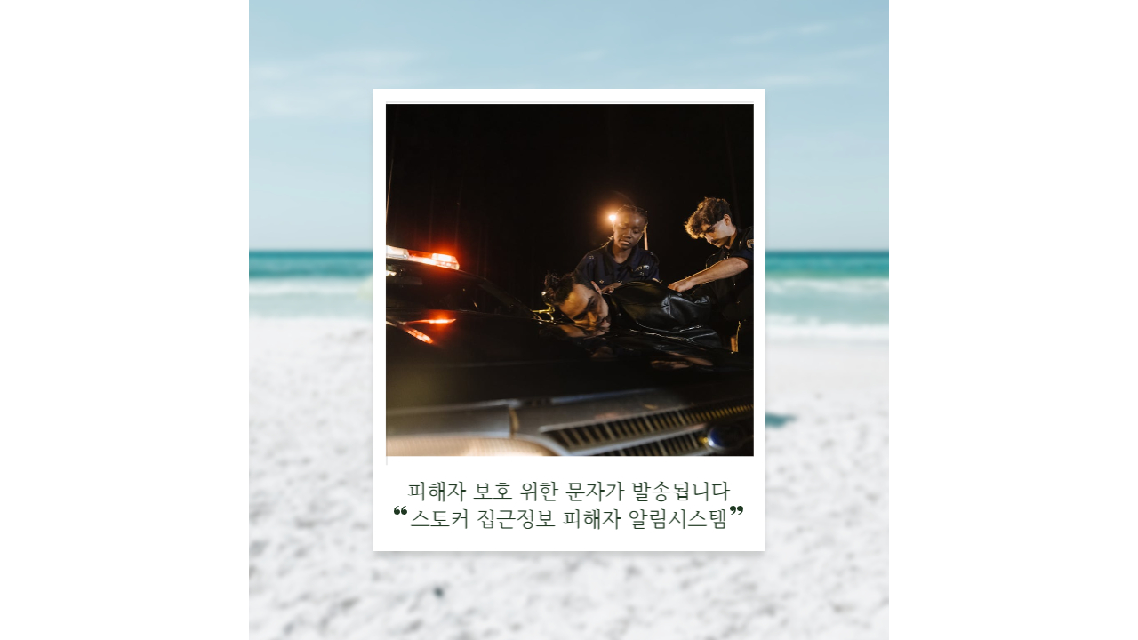 - 📩 자동 문자 발송: 스토커가 일정 거리 이내로 접근하면 피해자의 휴대전화로 경고 문자가 발송됩니다.
