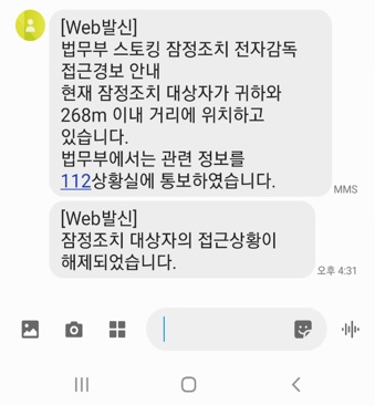 스토커 접근정보 피해자 알림 시스템은 전자발찌를 착용한 스토커가 피해자에게 2km 이내로 접근할 경우, 피해자의 휴대전화로 자동 경보 문자를 발송하는 시스템이에요. 이와 동시에 위치추적 관제센터에 경보가 울리며, 경찰청 112 시스템으로 자동 신고가 접수되어 즉각적으로 대응합니다. 와우!!