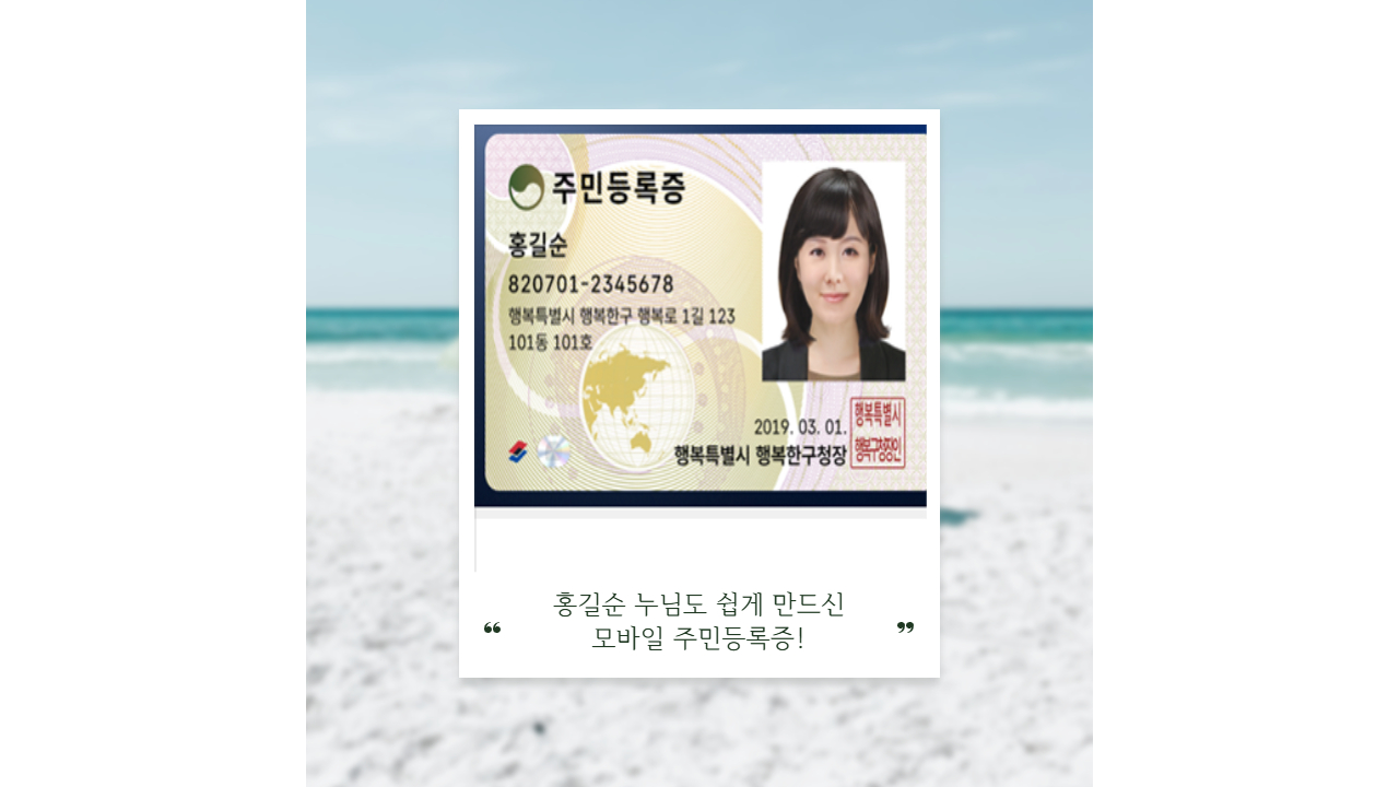 - 📵 공유 및 스크린샷 금지 — 모바일 주민등록증은 개인정보가 포함된 만큼 스크린샷 및 외부 공유는 절대 금지합니다.